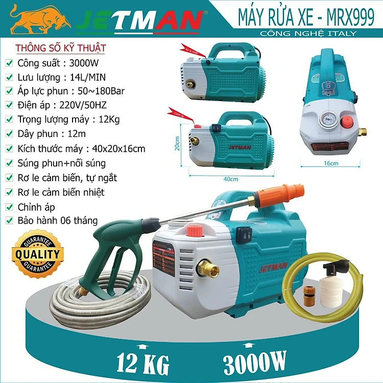 Máy rửa xe áp lực cao JETMAN MRX 999 - Công suất 3000W NẶNG 12KG - ITALY Technology