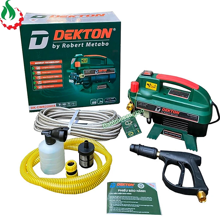 + Phụ tùng theo máy: 1 đầu xịt, 1 lọc nước, 1 bình phun bọt, 1 bộ dây áp lực chính hãng dekton 8M, 1 bộ dây tiếp nước 2M, 1 nối nhanh, 1 bộ giấy hướng dẫn và phiếu bảo hành trị giá 6 tháng