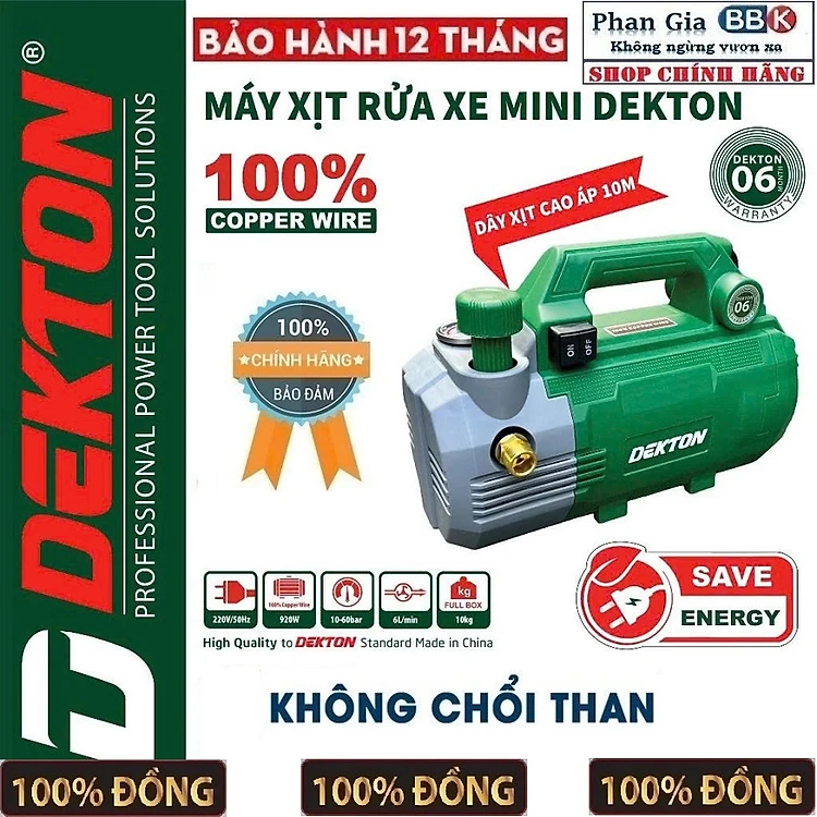 Máy Rửa Xe Dekton DK-CWR2351R, Công suất 920W, Chỉnh Áp - Motor Lõi Đồng 100%, Bảo Hành 12 tháng
