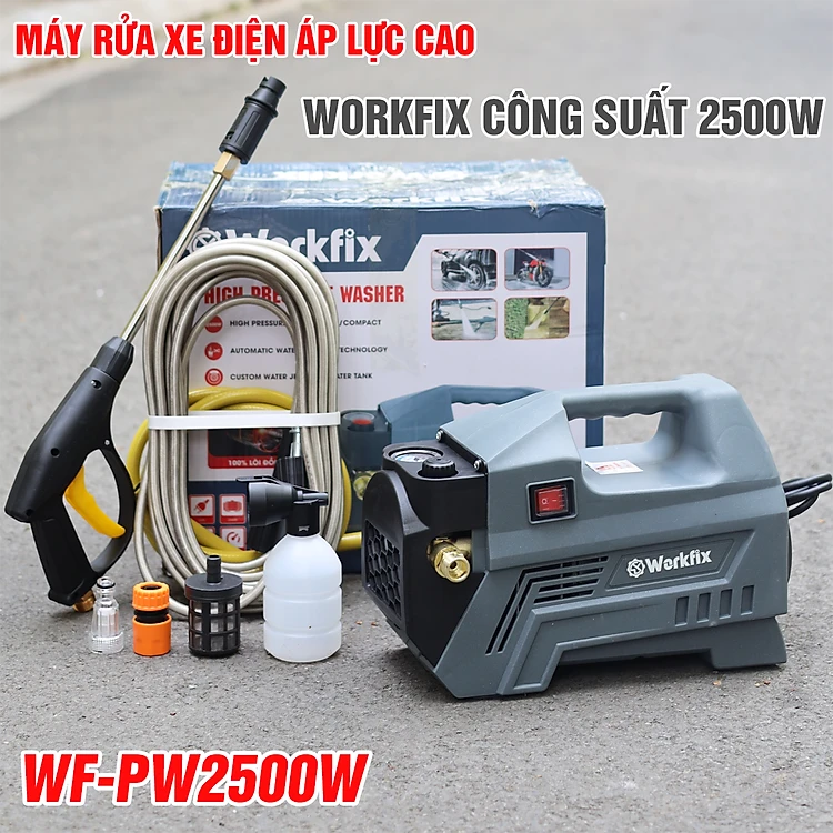 ( Động cơ Lõi Đồng ) Máy Rửa Xe Điện Workfix Cao Áp Công Suất Lớn 2500W - WF-PW2500W - Đây Đồng , Động cơ 160BAR - Bảo Hành Chính Hãg 6 Tháng