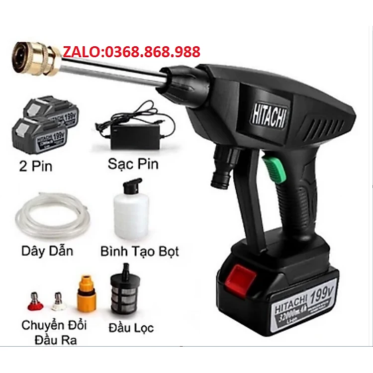 MÁY RỬA XE DÙNG PIN - TẶNG DÂY NỐI