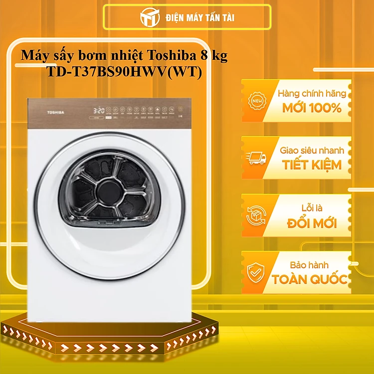 Máy sấy bơm nhiệt Toshiba 8 kg TD-T37BS90HWV(WT) - HÀNG CHÍNH HÃNG - CHỈ GIAO HCM