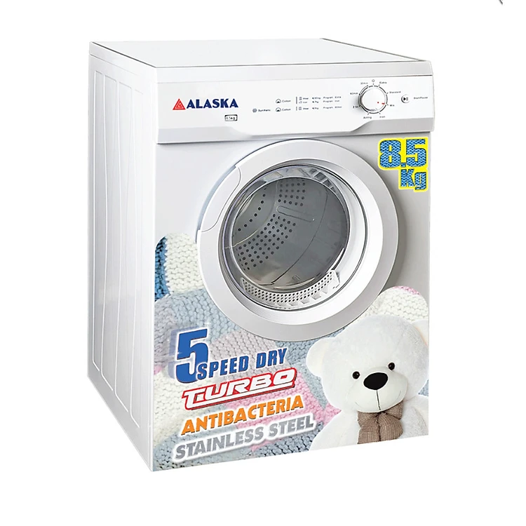 Máy sấy quần áo Alaska S85 với công suất cao, khả năng sấy chuyên nghiệp sẽ cho bạn quần áo khô cong sạch sẽ sau 3h đồng hồ. Với chiếc máy sấy này thì dù thời tiết có ẩm ướt hay mưa nhiều bạn cũng không còn phải lo lắng về việc quần áo lâu khô, dẫn đến ẩm mốc nữa. Máy có thể đáp ứng được khối lượng sấy lên đến 8,5kg, thích hợp cho gia đình từ 4 - 5 người. Thiết bị không chỉ sấy khô quần áo nhanh chóng mà còn giúp bạn loại bỏ các mùi ẩm mốc, cân bằng độ ẩm và giảm nhăn. Với các chế độ lựa chọn độ khô kết hợp với khả năng truyền nhiệt hiệu quả, sản phẩm cho phép bạn kiểm soát quy trình sấy tối ưu để chăm sóc vải vóc tốt nhất, đồng thời góp phần tiết kiệm điện năng hiệu quả hơn.