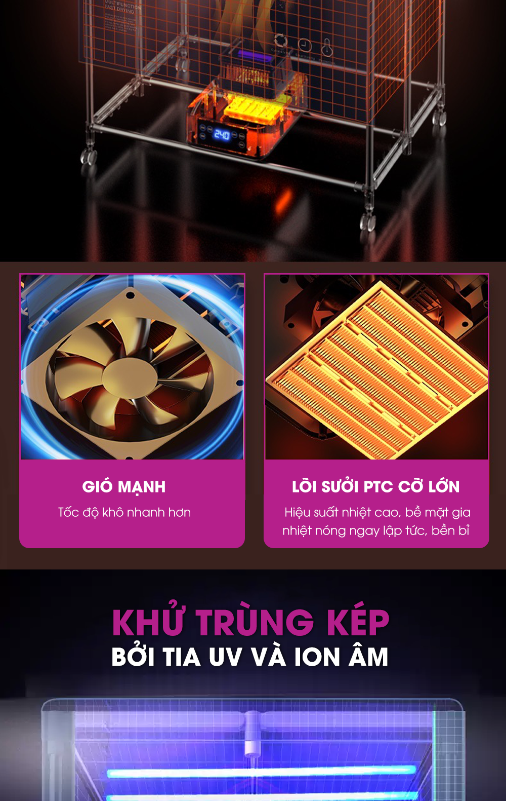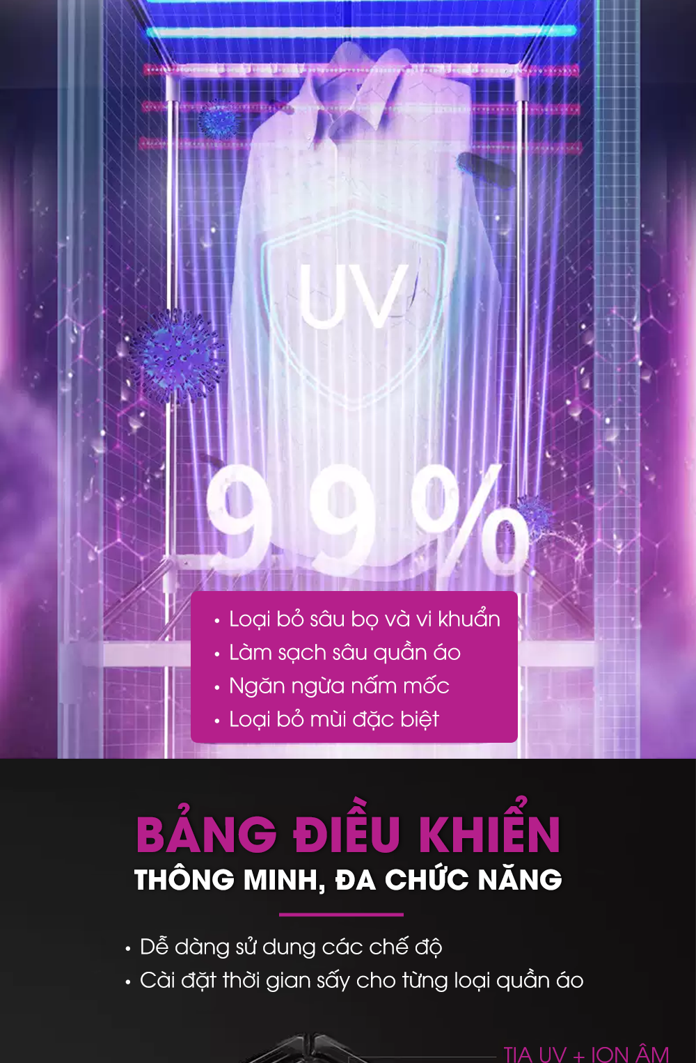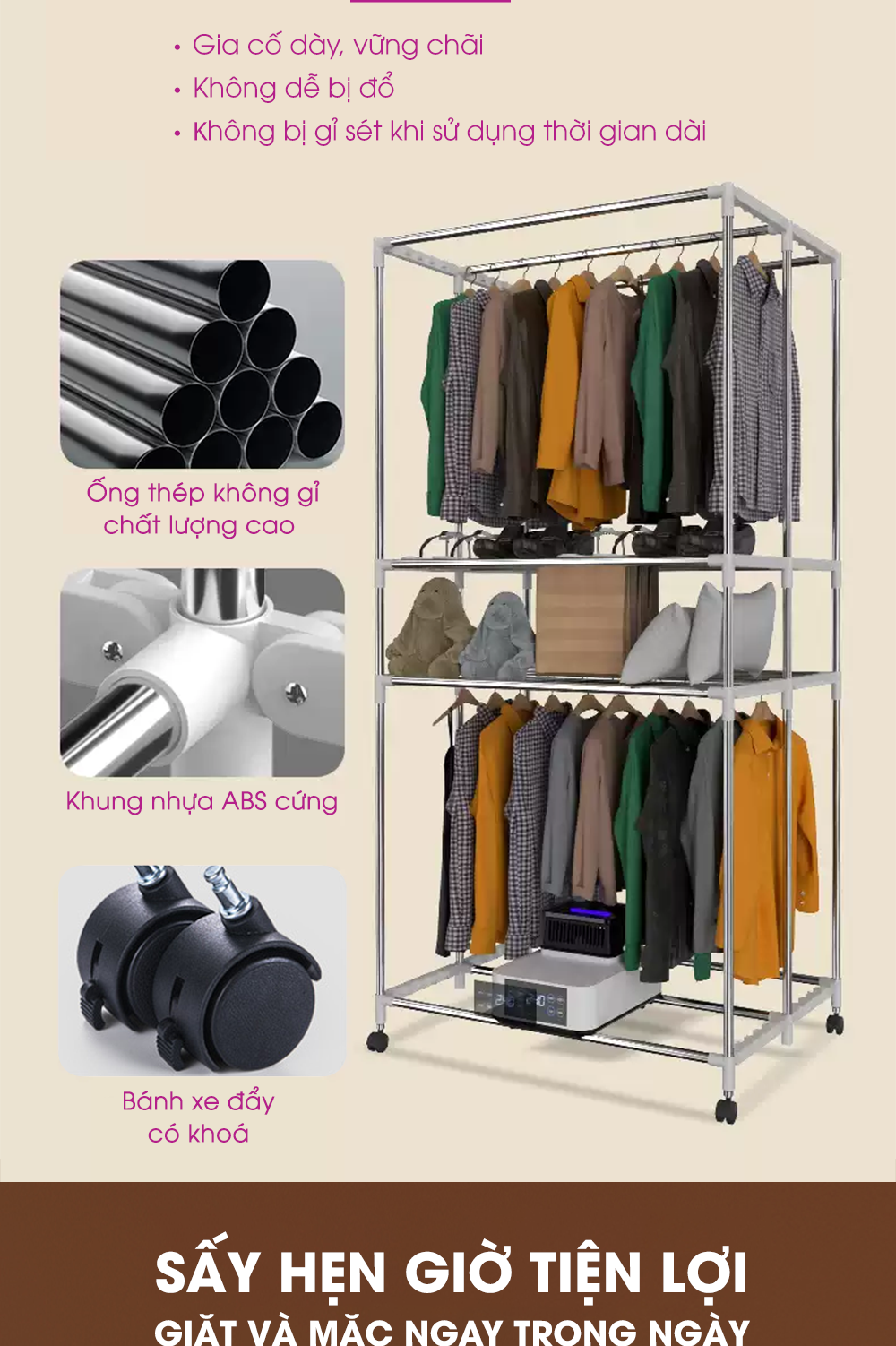 Tủ sấy quần áo CWELL D23, máy sấy quần áo gấp gọn 1.7M, công suất 1800W, sấy nhanh, khử khuẩn ION