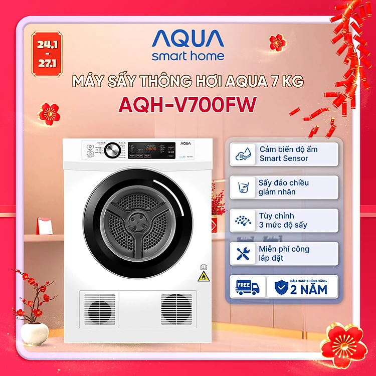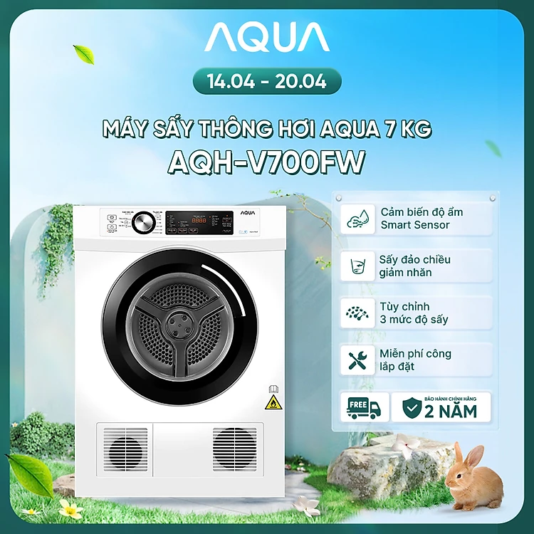 Máy sấy thông hơi Aqua 7 kg AQH-V700FW - Bảo hành 2 năm - Freeship toàn quốc - Hàng chính hãng