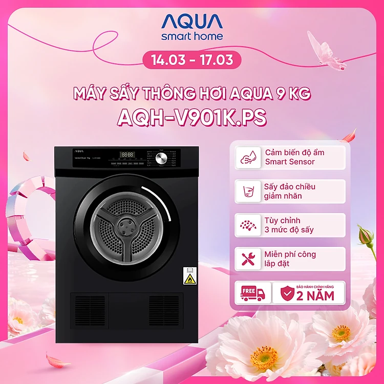 Máy sấy thông hơi Aqua 9 kg AQH-V901K PS - Freeship toàn quốc - Bảo hành 2 năm - Hàng chính hãng