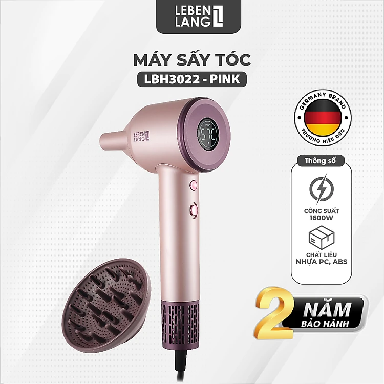 Máy sấy tóc 2 chiều nóng lạnh Lebenlang LBH3022, 1600W, ion chống xơ rối, hiển thị nhiệt độ, bảo hành 2 năm - hàng chính hãng