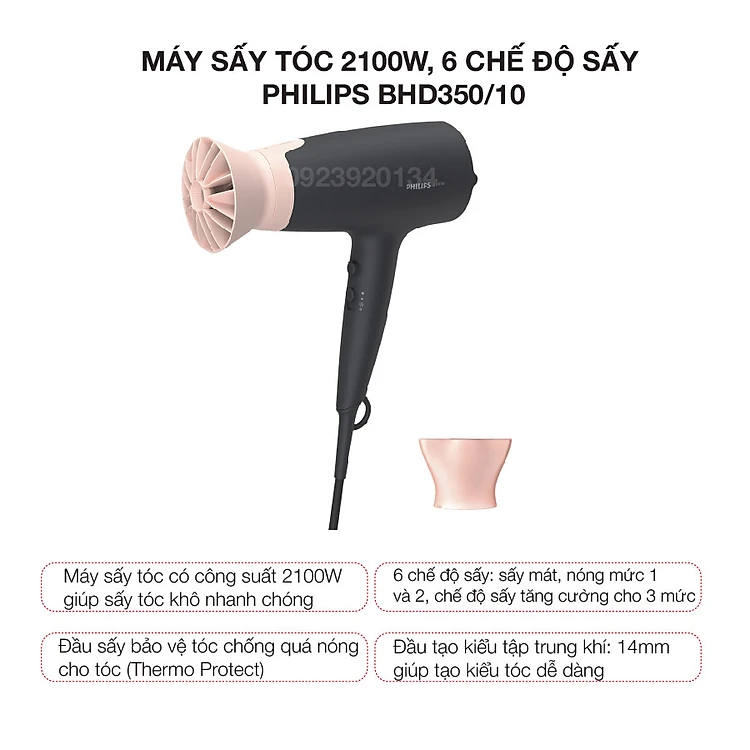 | Tạo ion âm: | Chức năng tạo ion giúp giảm khô tóc và cải thiện độ bóng mượt cho tóc |