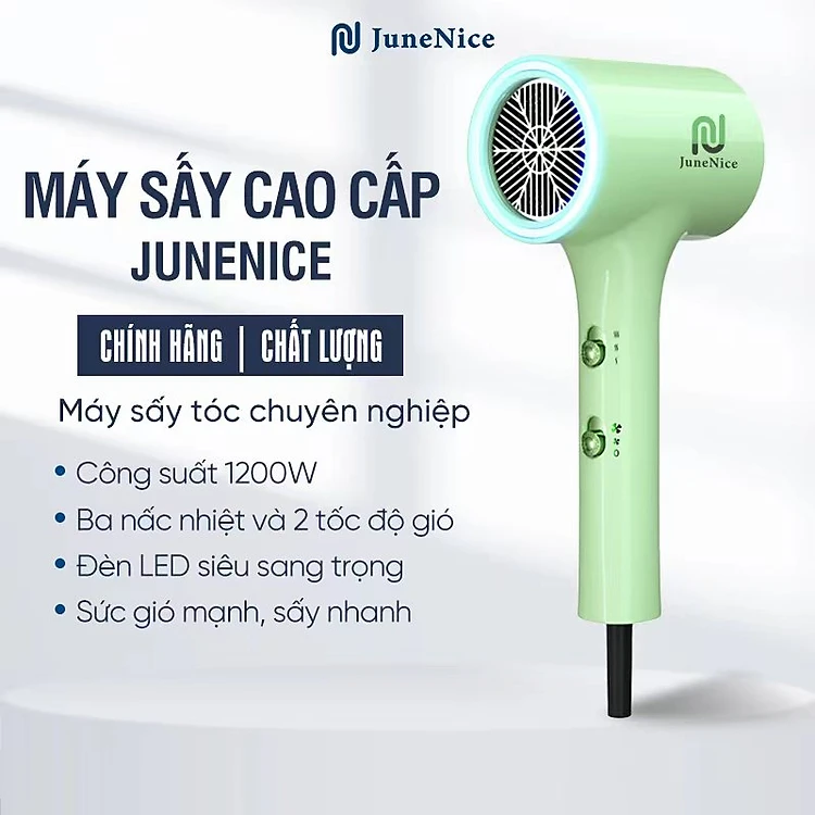 Máy sấy tóc JuneNice, công suất lớn 1800W với đèn led chạy vòng trên máy sấy biểu thị 2 sức gió 3 nhiệt độ JN_HY5515