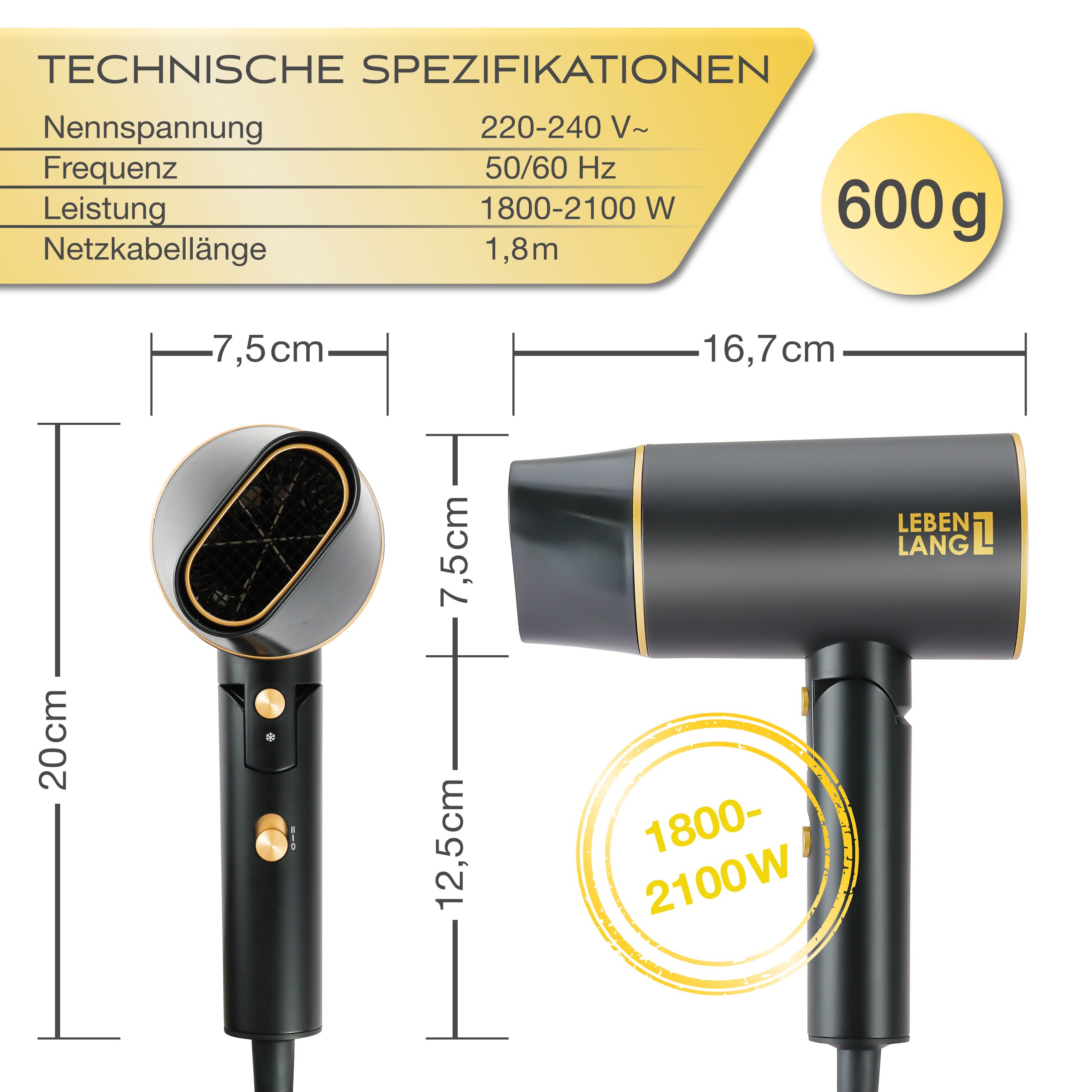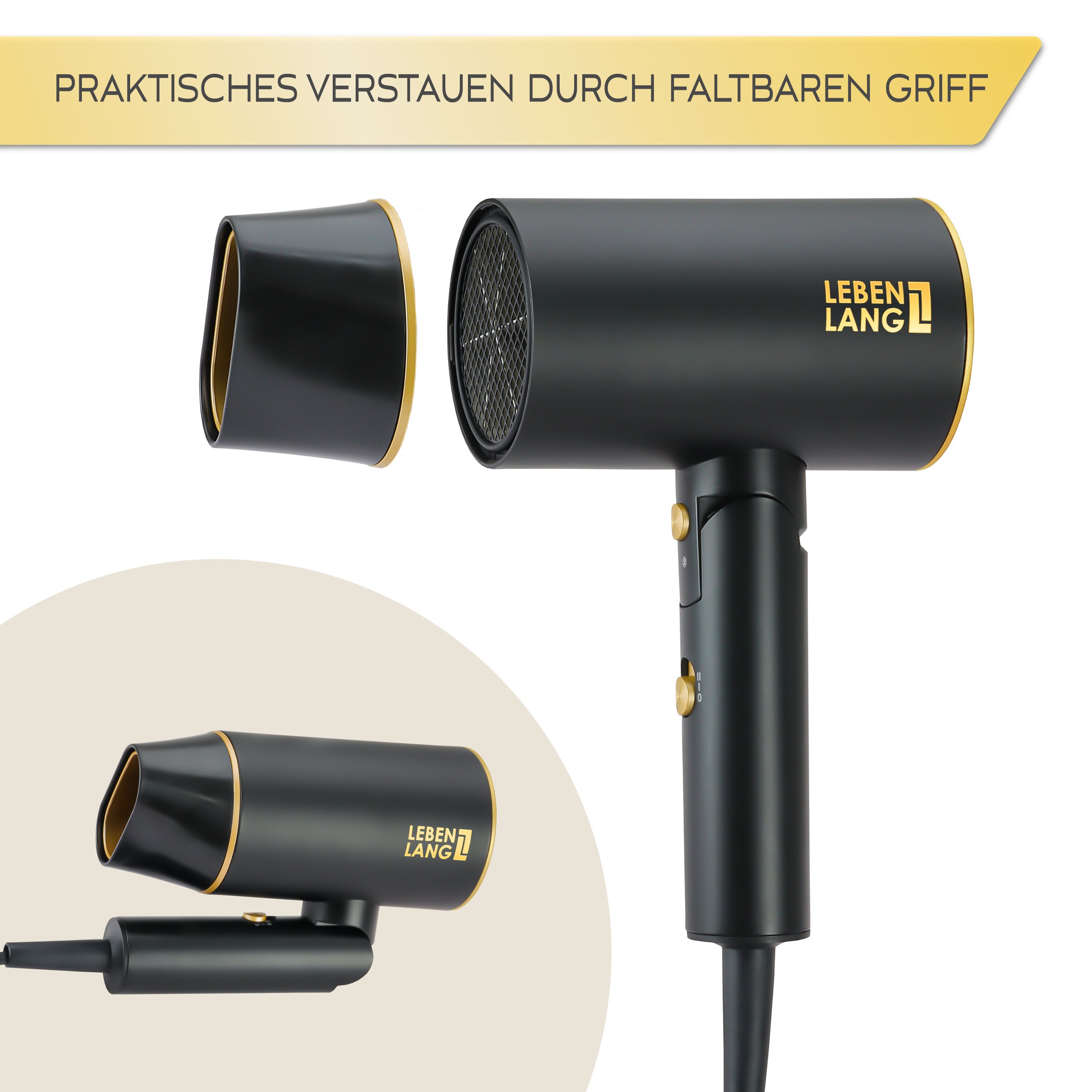 Máy sấy tóc Lebenlang LBH3088G với thiết kế gấp gọn, trọng lượng nhẹ tiện lợi, màu sắc sang trọng mang lại cho mái tóc bạn sự chăm sóc thật nhẹ nhàng và hiệu quả để luôn giữ được độ ẩm và sự chắc khỏe như được làm khô tự nhiên, duy trì vẻ óng mượt và mềm mại.