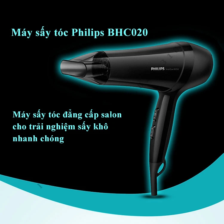 Máy sấy tóc Philips 2 chiều nóng lạnh BHC020 công suất lớn 1800W tạo kiểu tóc chuyên nghiệp chuẩn salon - Hàng nhập khẩu