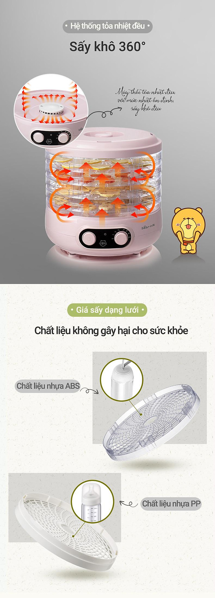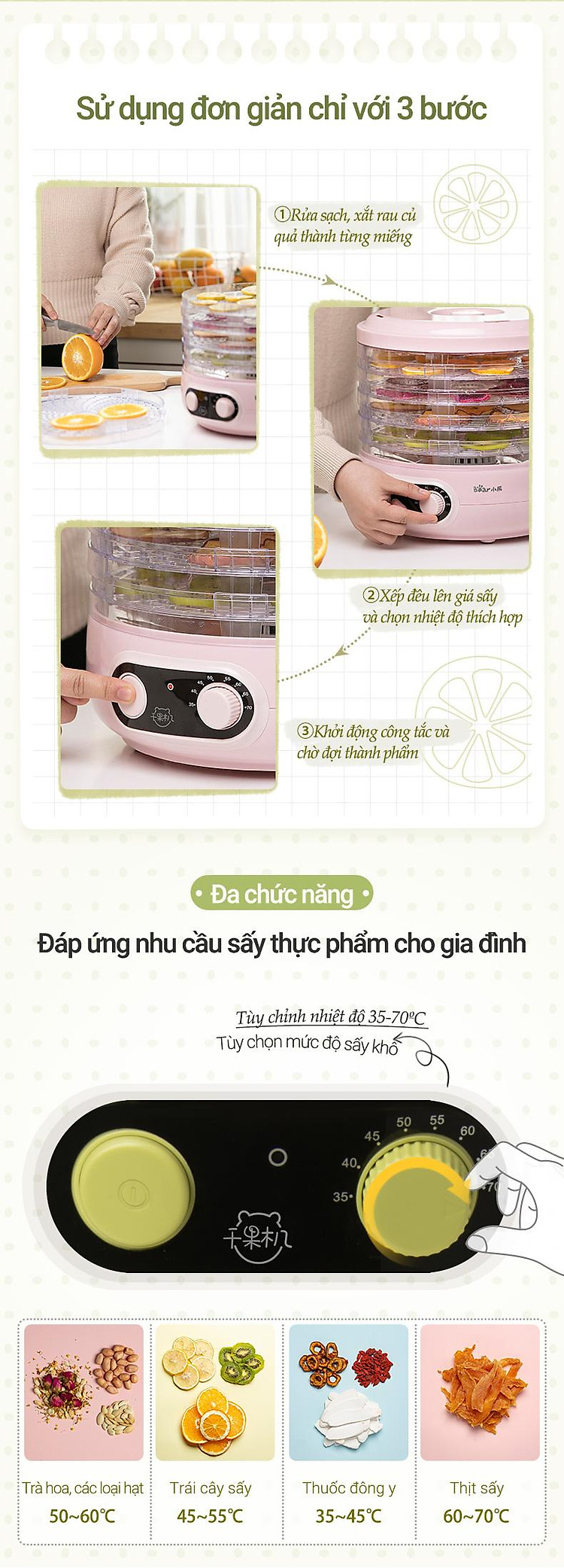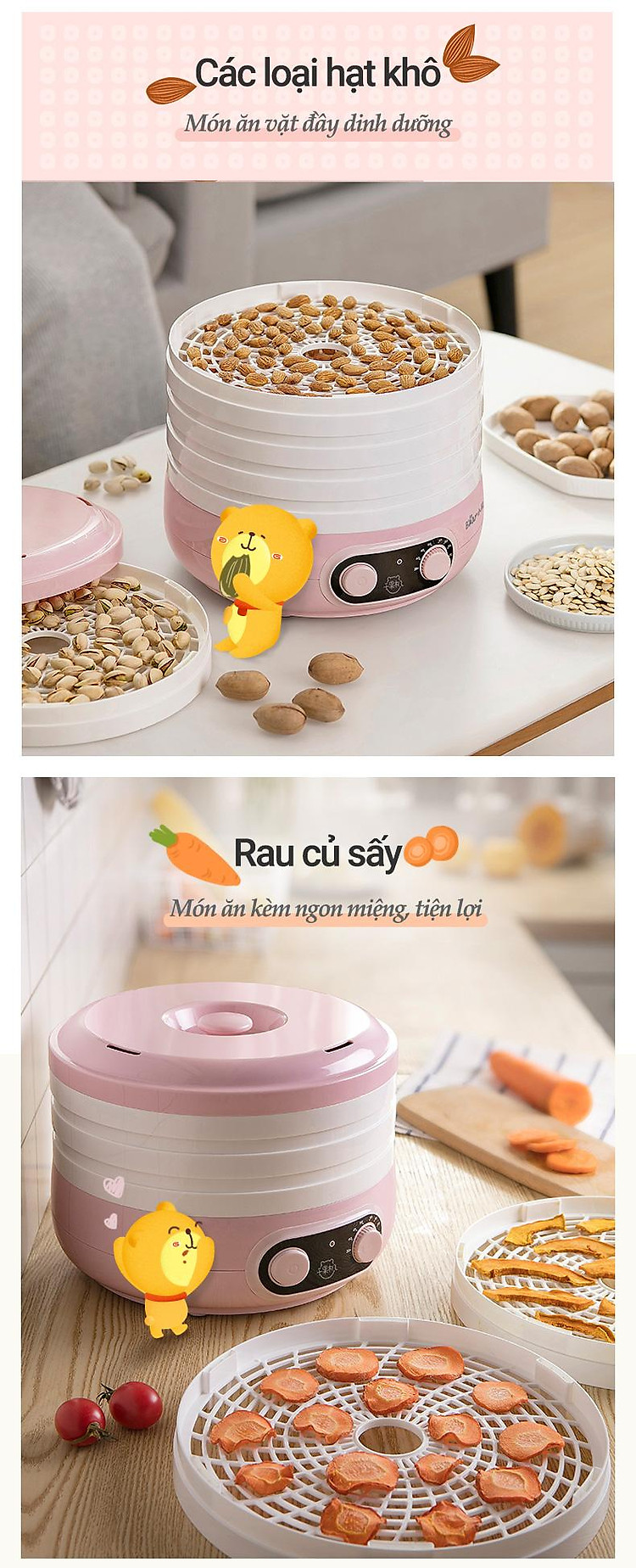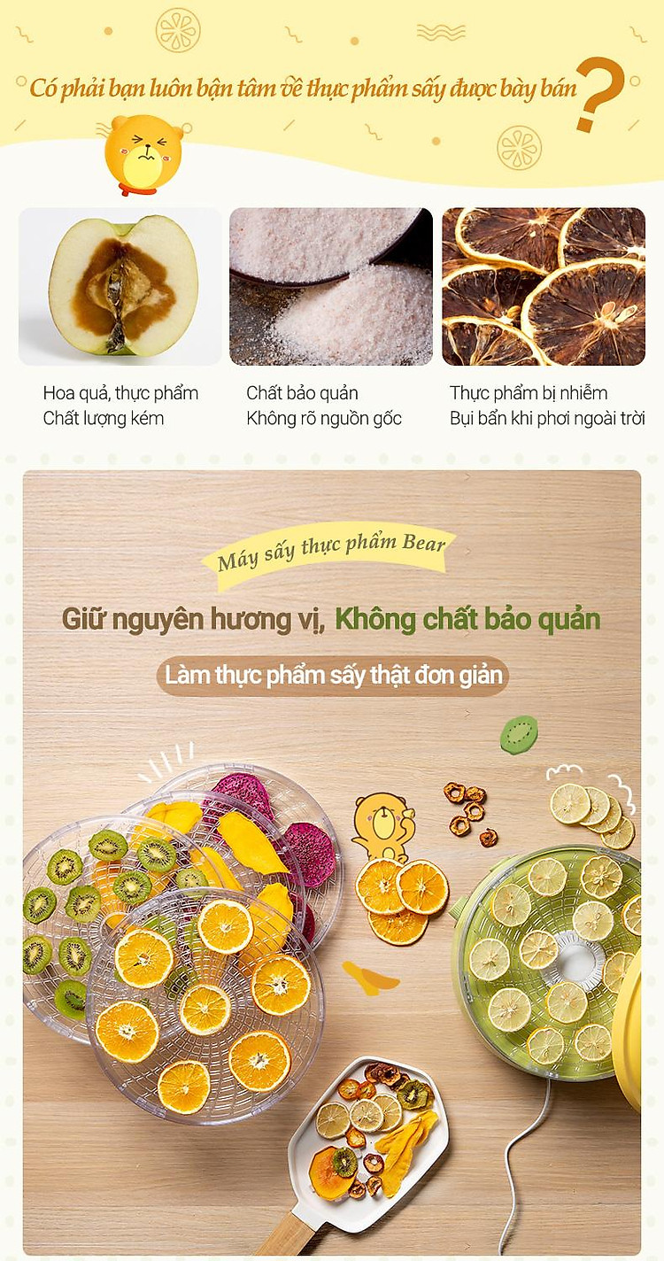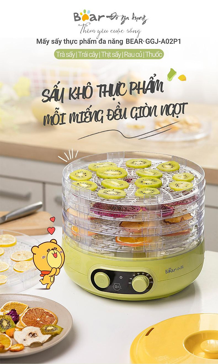 Máy sấy trái cây, thực phẩm 5 tầng Bear GGJ-A02P1. Đây là sản phẩm cực kỳ tiện dụng cho bạn làm những món mứt Tết, mứt trái cây hoặc sấy khô thực phẩm để bảo quản tốt hơn.