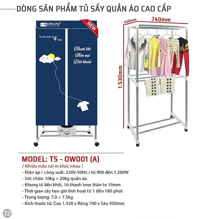 Máy Sấy - Tủ Sấy Quần Áo Khung Inox Owani TS-OW001 - Màu Ngẫu Nhiên - Hàng Chính Hãng