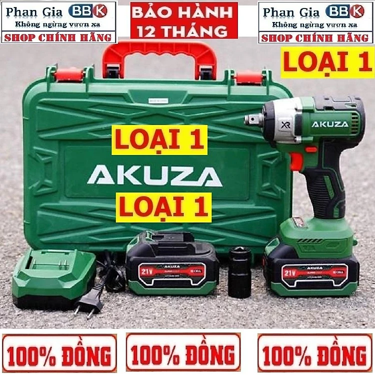 Máy Siết Bulong Pin AKUZA B350Pro Lực Siết 350N/m 21V - 2 Pin 10 Cell không chổi than - Bảo hành chính hãƞg