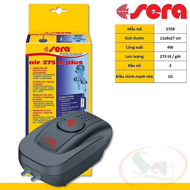 Máy sủi oxy Sera Air 110, 275, 550 R Plus sủi oxy 1, 2, 4 vòi êm bể cá tép