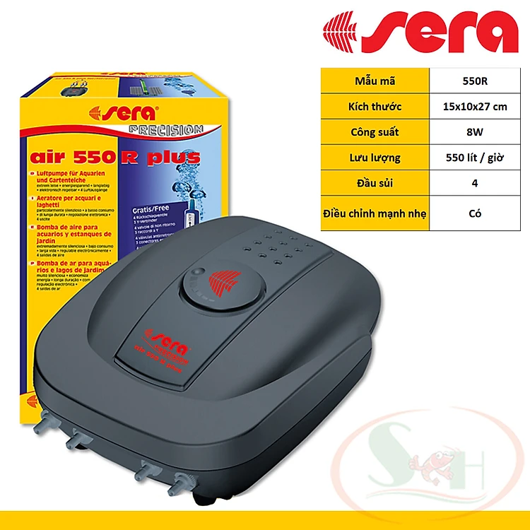 Máy sủi oxy Sera Air 110, 275, 550 R Plus sủi oxy 1, 2, 4 vòi êm bể cá tép