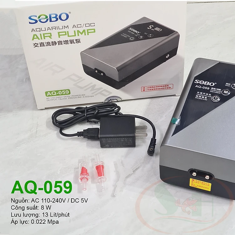 Máy sủi tích điện Sobo AC/DC Air Pump AQ series sục oxy 1 2 vòi bể cá tép thủy sinh cảnh