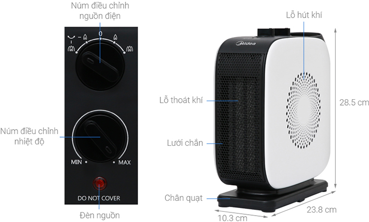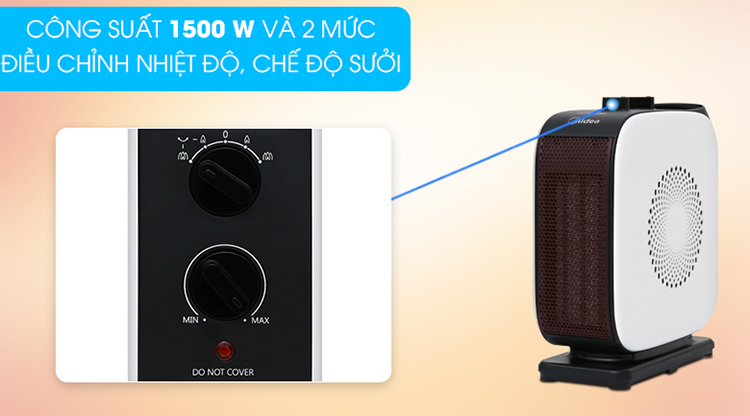 Midea MH-P15-C làm nóng bằng bộ phận PTC hiện đại cho khả năng làm nóng ổn định, độ bền cao. Bên cạnh đó, máy hoạt động với công suất tối đa mạnh mẽ 1500 W cho phạm vi làm ấm từ 5 - 10 m2.