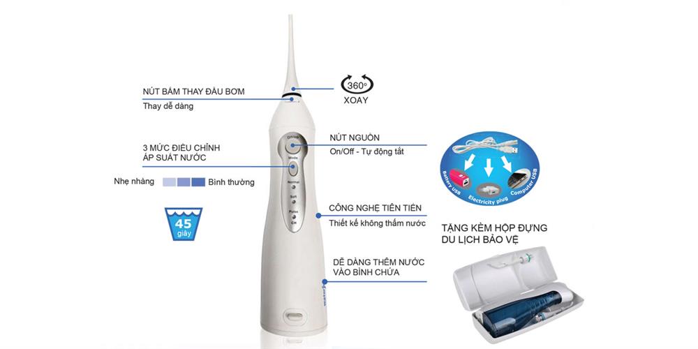 - Máy tăm nước được trang bị nút tâm ngưng trên tay cầm