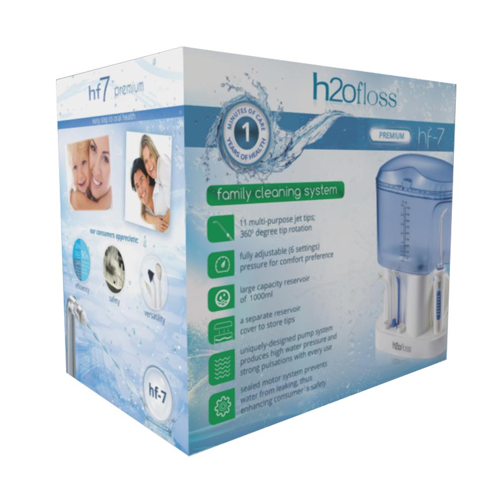 Máy tăm nước gia đình H2ofloss HF-7 (bản Premium) là một phiên bản nâng cấp của dòng HF-7C (Classic). H2ofloss là thương hiệu máy tăm nước hoàn hảo với nhiều model được thiết kế đa dạng. HF-7 dùng cho cả rang thông thường, nhạy cảm, răng giả, niềng rang, cấy ghép,… Là máy cắm điện để bàn được trang bị sẵn 11 đầu tăm thay thế đáp ứng nhu cầu đa dạng nên HF-7 có thể dung chung cho cả gia đình hàng ngày như một sản phẩm chăm sóc sức khỏe răng miệng cho cả nhà.