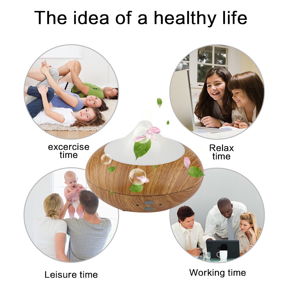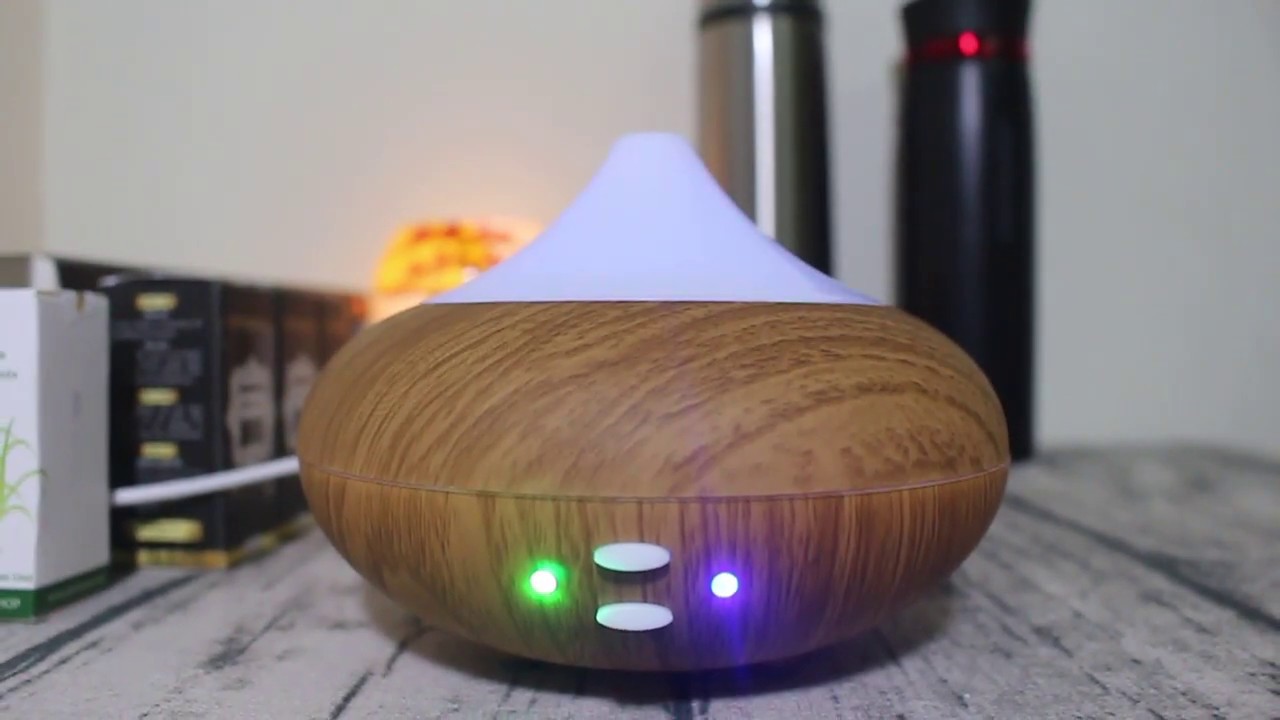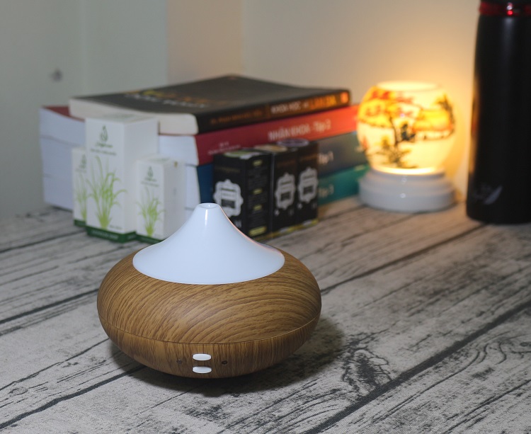 Máy Tạo Ẩm Khuếch Tán Tinh Dầu YM-C màu gỗ Sáng - Tặng kèm tinh dầu thiên nhiên + Móc Hồ lô may mắn, bình an Qasto