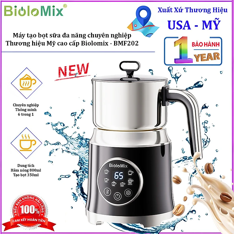Máy tạo bọt sữa đa năng chuyên nghiệp 6 trong 1. Thương hiệu Mỹ cao cấp Biolomix - BMF202. Hàng chính hãng