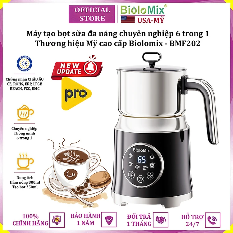 Máy tạo bọt sữa đa năng chuyên nghiệp 6 trong 1 thương hiệu Mỹ cao cấp Biolomix BMF202 - Hàng nhập khẩu