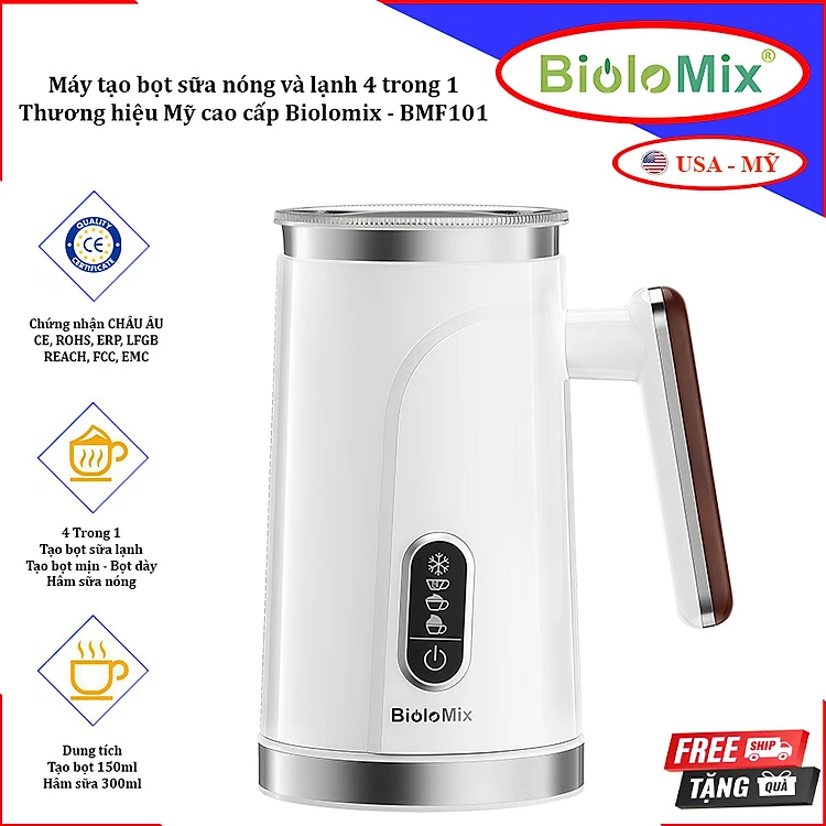 Máy tạo bọt sữa nóng và lạnh 4 trong 1. Thương hiệu Mỹ cao cấp Biolomix - BMF101. Hàng nhập khẩu