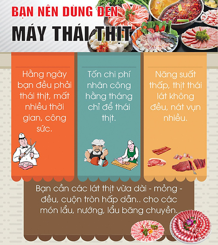 Trước đây, để thái được thịt với lượng lớn, thái lát mỏng đẹp mắt thì đòi hỏi người thái cần có kĩ thuật, mất nhiều thời gian cũng như dao phải thật sắc. Với việc thái thủ công gặp khá nhiều bất tiện thì hiện nay đã có máy thái thịt QX 250 sẽ giải quyết giúp bạn những bất tiện trên. Thịt thái các miếng như một, lát mỏng, đều đẹp.