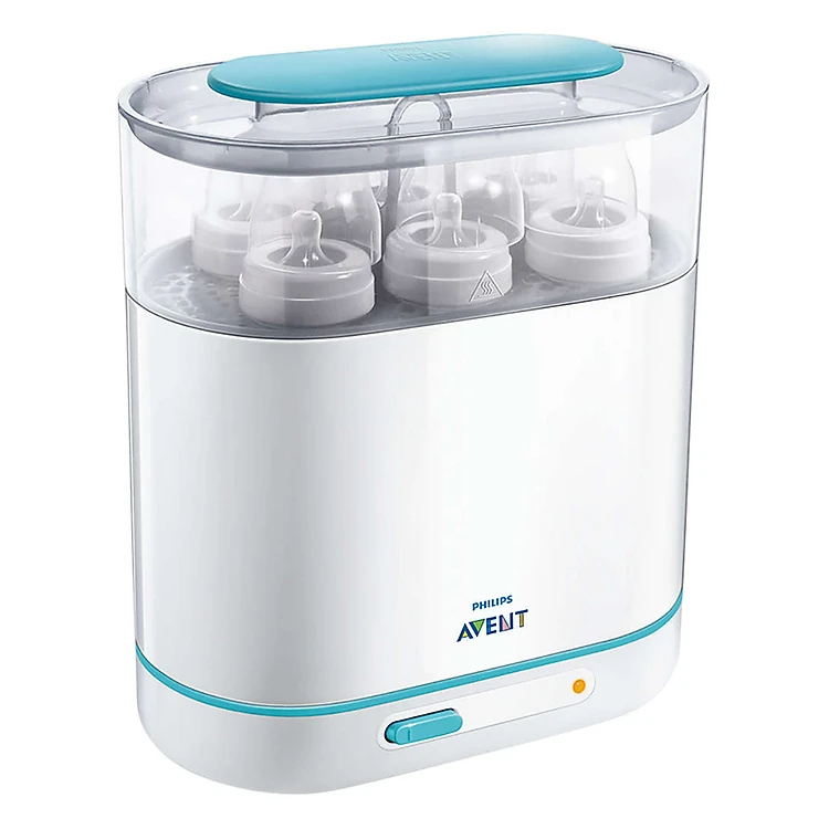 - Đây là sản phẩm hiện đại nhất của dòng máy tiệt trùng Avent chứa được 5 bình sữa hoặc 2 bộ máy vắt sữa, chén bát ăn của bé.