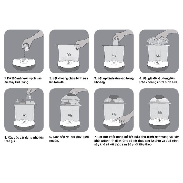 Quá trình tiệt trùng sẽ kết thúc sau 12 phút và quá trình sấy khô sẽ kết thúc sau 30 phút tiếp theo.