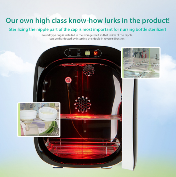 Bình sữa, núm ti, phụ kiện hút sữa và các đồ dùng khác của mẹ và bé sẽ được tiệt trùng và chống nhiểm khuẩn một cách tuyệt đối.