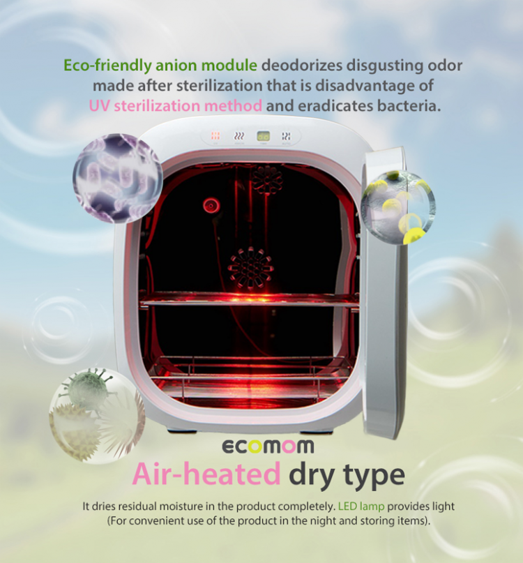 Và để công việc vệ sinh, tiệt trùng bình sữa của các mẹ được đơn giản, nhanh chóng và an toàn thì sản phẩm máy tiệt trùng sấy khô khử mùi bằng tia UV Ecomom ECO-100 nhập khẩu Hàn Quốc là sự lựa chọn tuyệt vời.