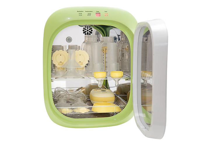 Dụng cụ hút sữa, bình sữa, núm ti, … được tiệt trùng dễ dàng bằng Máy tiệt trùng sấy khô khử mùi bằng tia UV Ecomom.