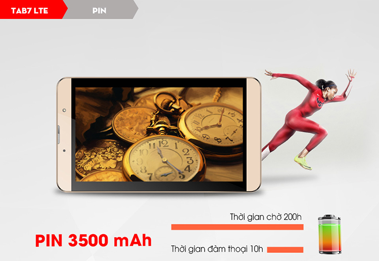 Masstel Tab 7 LTE có dung lượng pin 3500 mAh cho thời gian đàm thoại đến 10 giờ, thời gian chờ 200 giờ giúp bạn thỏa sức làm việc, giải trí đa phương tiện thoải mái mà không lo pin yếu hay hết pin đột xuất. Bên cạnh đó, máy còn cung cấp nhiều tính năng tiện ích khác cho bạn như nghe nhạc MP3, GPS, jack cắm 3.5mm, tích hợp Bluetooth và Wi-Fi giúp bạn kết nối nhanh chóng với nhiều thiết bị khác.