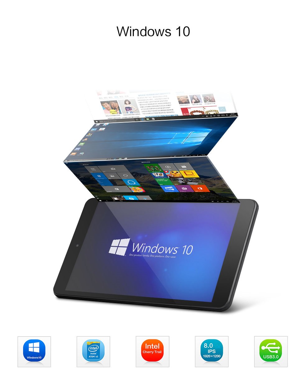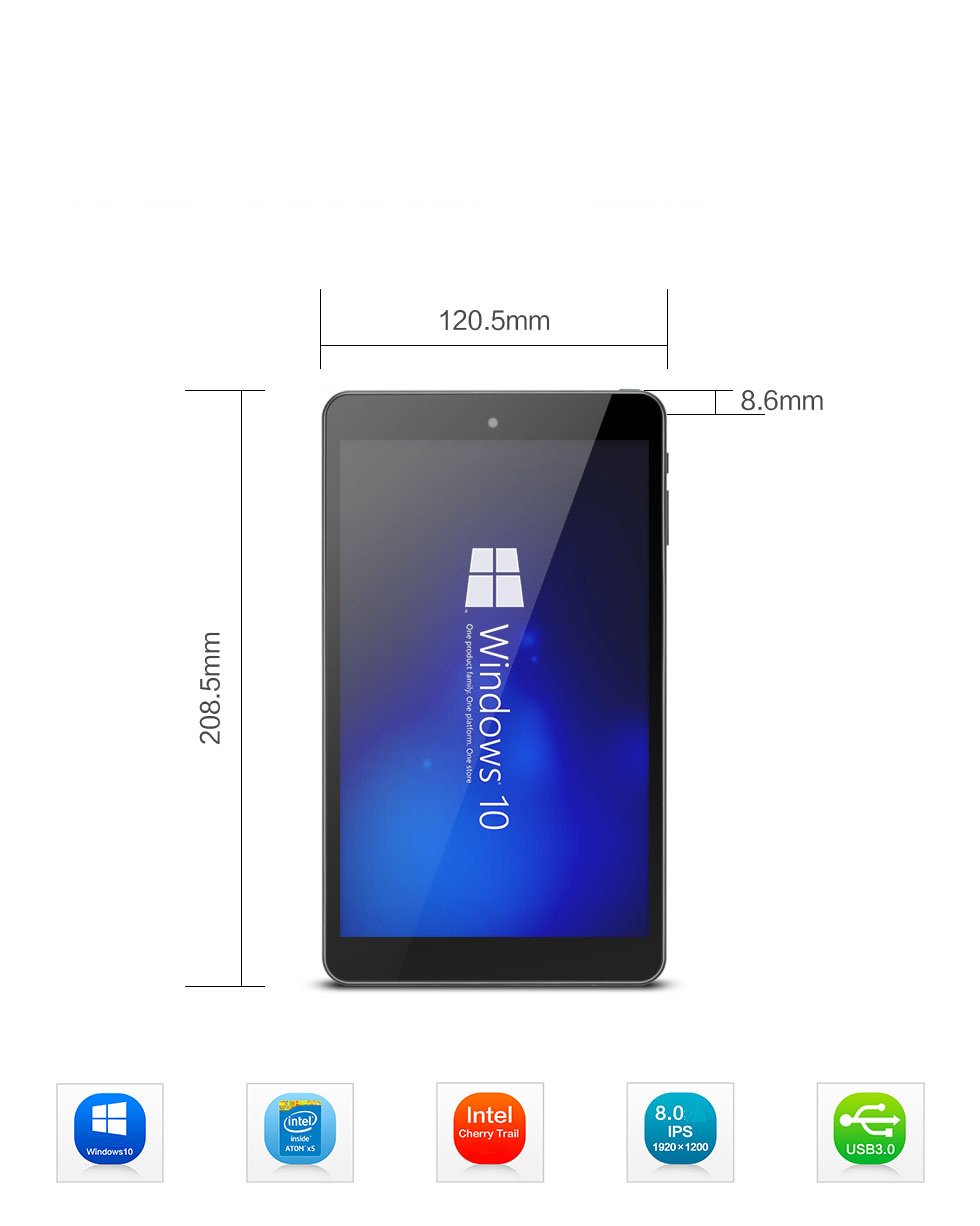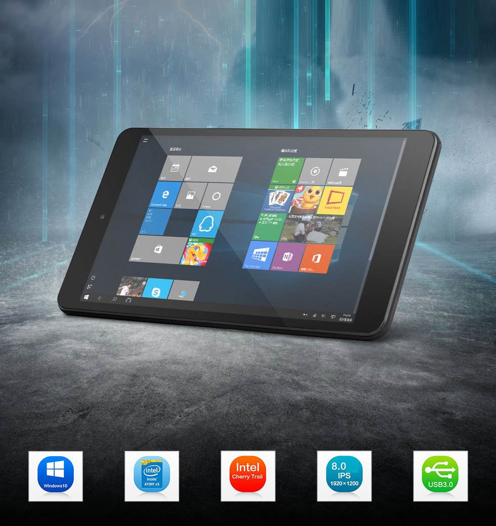 - CPU: Intel Cherry Trail Z8350 lõi tứ, 64 bit, 14nm