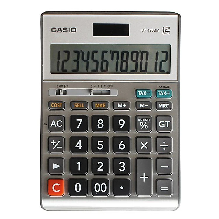 Máy tính Casio cỡ trung bề mặt kim loại số to Tem BH 2 năm DF-120BM