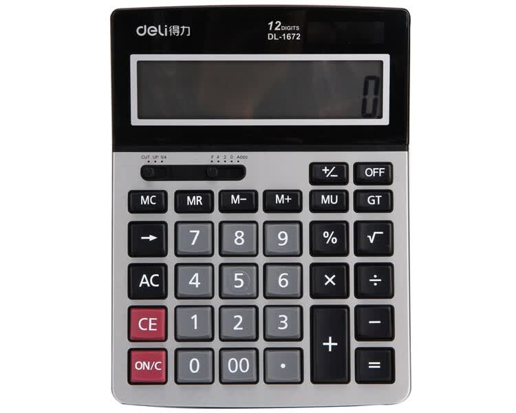 - Máy Tính Để Bàn Deli 1672A: Sản phẩm được thiết kế với màn hình LCD cỡ lớn, hiển thị rõ nét 12 con số