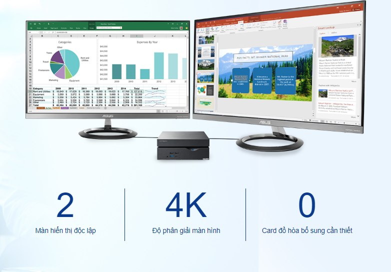 VivoMini VC66-C được trang bị bộ xử lý Intel UHD Graphics 630 để cho độ phân giải 4K UHD tuyệt đỉnh - biến nó trở thành một PC rạp hát tại gia lý tưởng. Các cổng HDMI, DisplayPort và DVI-I đảm bảo tương thích với các màn hình, TV và máy chiếu - vì vậy bạn có nhiều lựa chọn màn hình. VivoMini VC66-C thậm chí cho phép bạn làm việc đồng thời trên hai màn hình.