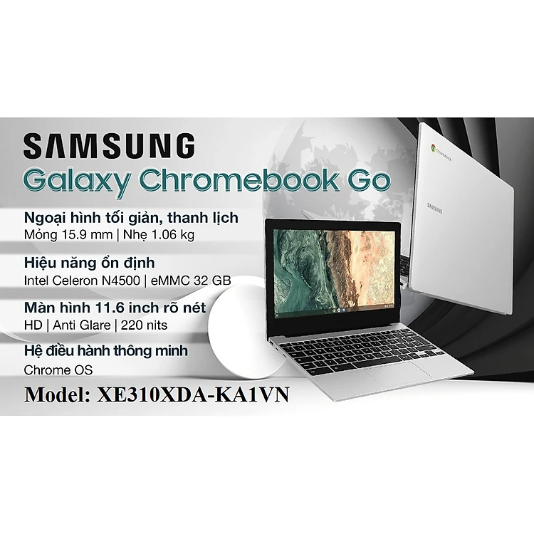 Máy Tính Xách Tay Laptop Samsung Galaxy Chromebook Go XE310XDA N4500/4GB/32GB/ChromeOS - Hàng Chính Hãng