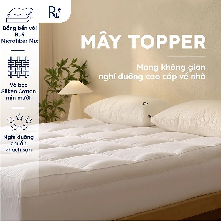 Mây Topper Ru9 Cao Cấp | Màu Trắng | Ru9 Fiber Mix bồng bềnh nâng đỡ | 07 Ngày 1 Đổi 1 | 1m6, 1m8, 2m, 2m2