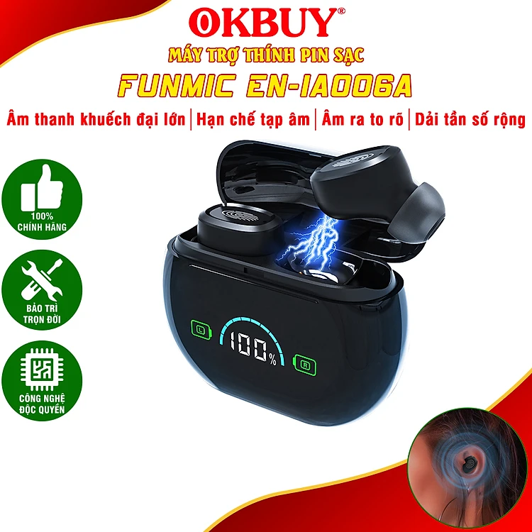Máy trợ thính không dây Funmic EN-IA006A Có hộp sạc hiện đại