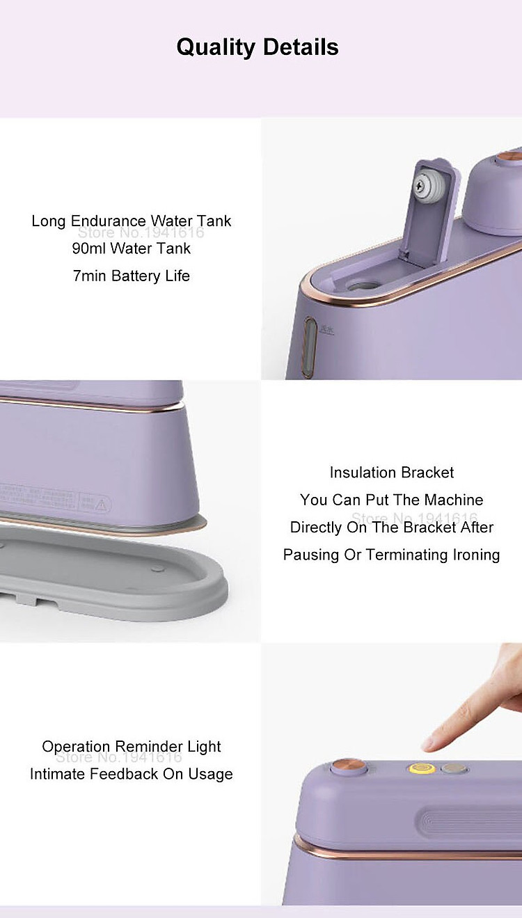 Youpin Handheld Ironing Machine 90mL Smart Steam Heating Machine 1000W Portable Electric Iron Hand-Held Clothes Ironing Product name: handheld ironing machine Product model:HI-029 Product power: 1000W Water tank capacity: 90mL Steam stall: two-stage steam/independent dry ironing Warm-up time: 45 seconds Life time: 5-7 minutes Product Net Weight: 1.0kg Product size: 179*77.5*150mm Accessories: Insulated base, storage bag