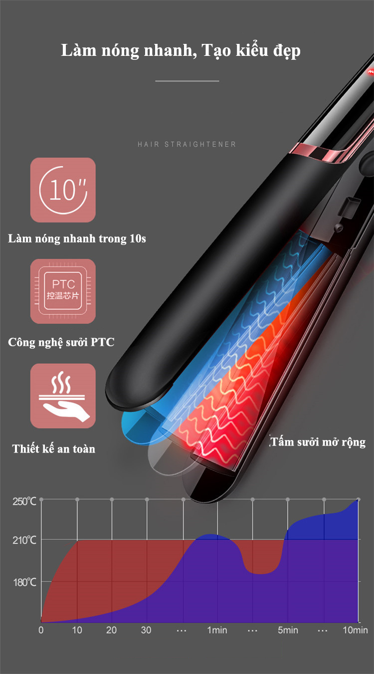 Dễ sử dụng khi tóc Ướt và Khô. Nóng siêu tốc chỉ sau 10 giây với công nghệ tiên tiến PTC