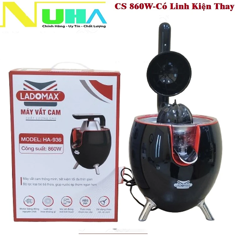 Máy vắt cam công suất lớn Ladomax - Công suất 860W - moto đồng - có linh kiện thay - Màu đen - Hàng chính hãng