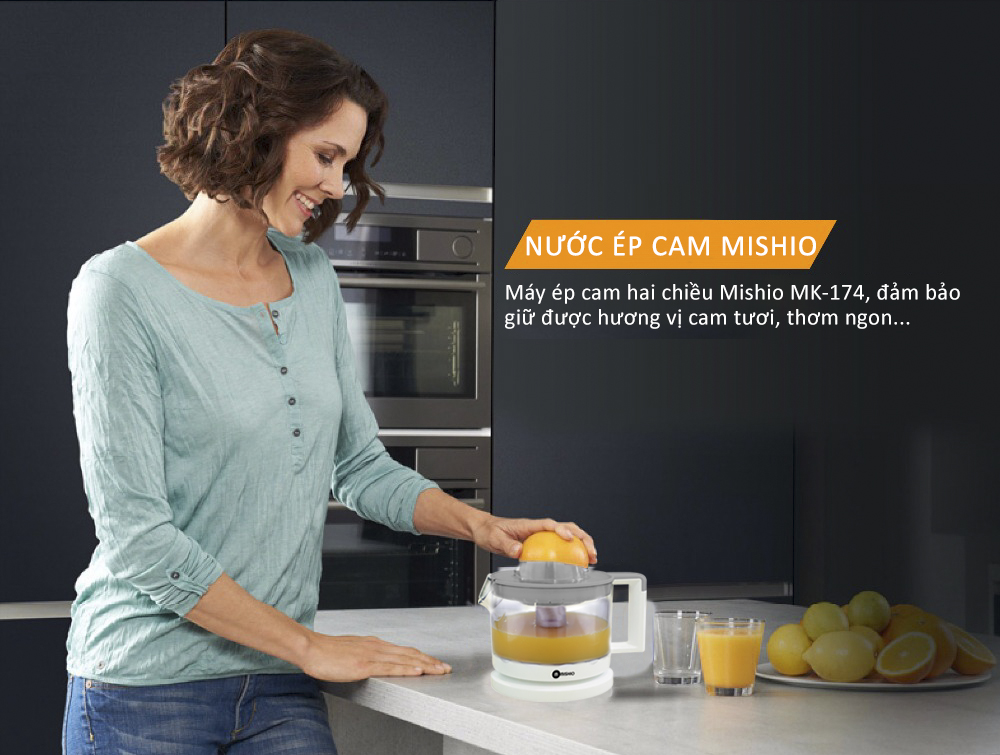 Máy vắt cam Mishio MK-174 giúp bạn dễ dàng thưởng thức những ly nước ép trái cây ngon tuyệt mà không cần mất nhiều thời gian và công sức.