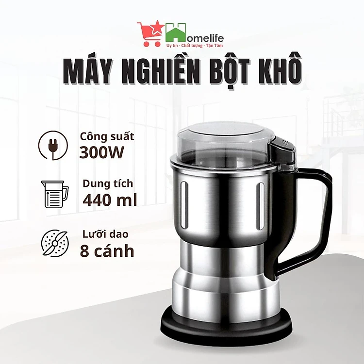 Máy Xay Bột Khô Siêu Mịn Công Suất 300W, 8 Lưỡi Dao Đa Năng - Dụng cụ Nghiền Đồ Khô, Hạt Cà Phê, Ngũ Cốc, Gia Vị