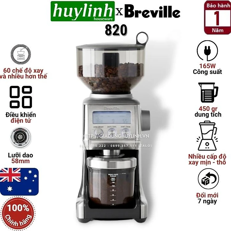 Máy xay cafe Breville 820 the Smart Grinder Pro BCG820BSS - Hàng chính hãng
