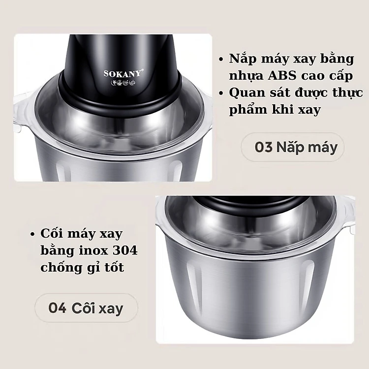 Máy xay thịt đa năng SOKANY SK-06028, dung tích lớn 2L, công suất 400W, lưỡi dao 2 tầng xay nhuyễn mọi thực phẩm - HÀNG CHÍNH HÃNG