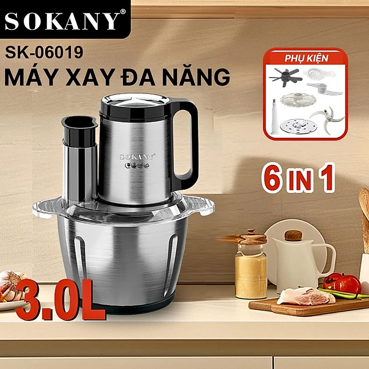 Máy xay đa năng 6in1 SOKANY SK-06019 dung tích 3L tích hợp xay, ép, cắt, thái vô cùng tiện lợi - HÀNG CHÍNH HÃNG - DELIYA